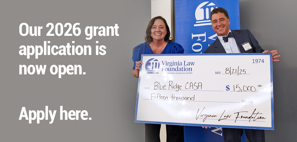 The Virginia Law Foundation has provided more than $30 million in grants to support projects throughout the Commonwealth that facilitate access to justice, promote the Rule of Law, and provide law-related education in support of these ideals.